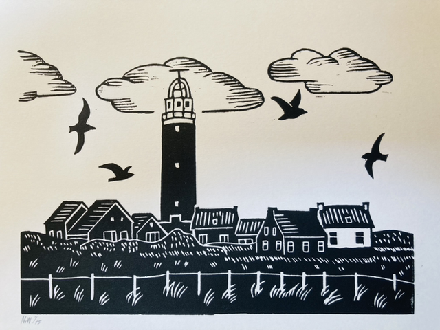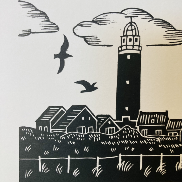 Linoafdruk gedrukt in oplage van 75, genummerd en ondertekend